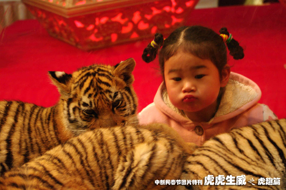 1月30日,虎年將至,重慶某商廈開展野生動物保護法宣傳,“請”來幾只活潑可愛的小老虎與市民近距離接觸,人見人愛。中新社發(fā) 金城 攝