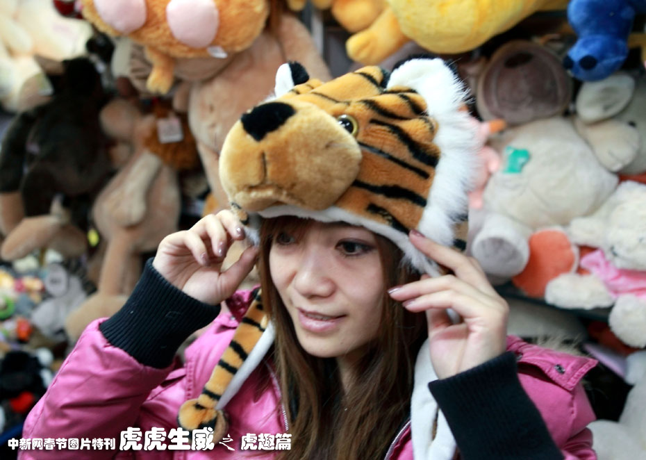 虎年將至,北京商場(chǎng)中造型各異的毛絨老虎玩具及飾品熱賣。中新社發(fā) 老羅 攝