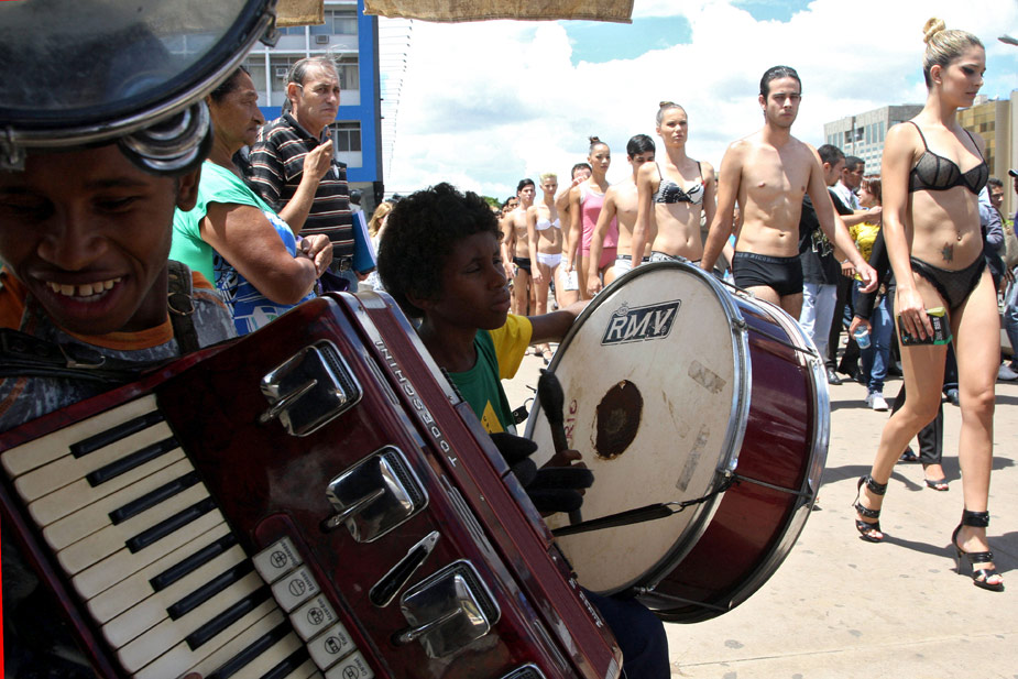 當(dāng)?shù)貢r間2月9日,巴西首都巴西利亞的一座公共汽車站,一群身穿性感內(nèi)衣的模特招搖過市,吸引大批路人注目,當(dāng)天是巴西的內(nèi)衣日。