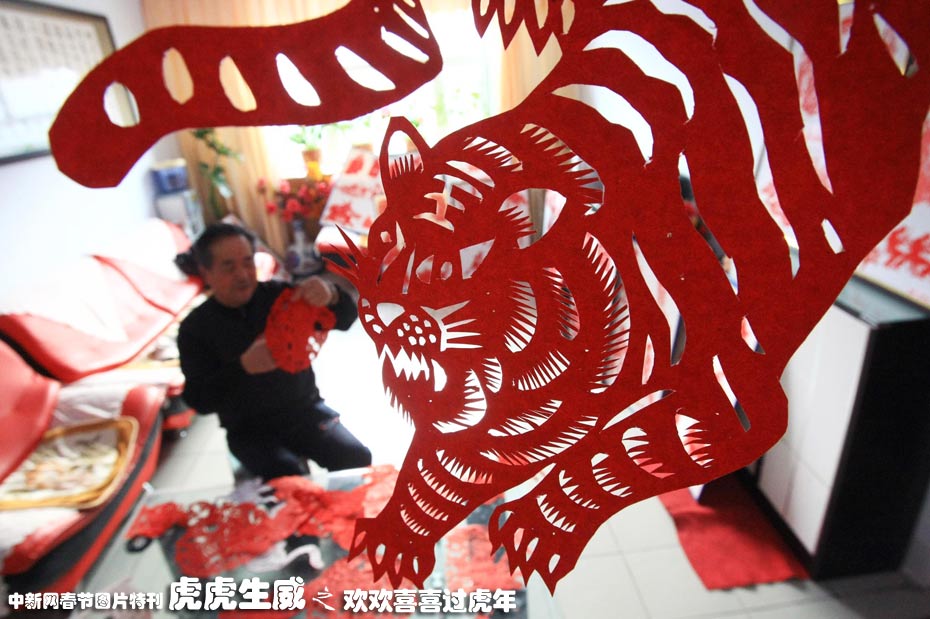 2月1日,已有56年剪紙經(jīng)驗(yàn)的新疆奇臺(tái)縣71歲民間剪紙藝人李萬(wàn)發(fā)正在家中精心剪裁各類虎圖案,準(zhǔn)備贈(zèng)與親朋好友。中國(guó)農(nóng)歷新年即將到來(lái),新疆各地以各種方式迎接農(nóng)歷虎年的到來(lái)。中新社發(fā) 劉新 攝