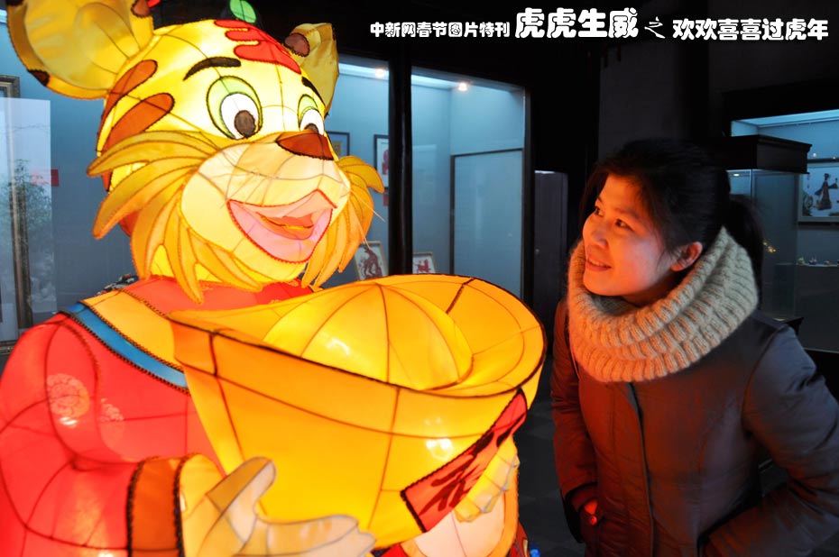 2月3日,一名游客在南京民俗博物館舉辦的“虎年民間藝術(shù)大展”上觀賞“虎燈”。此次大展展示了云錦、剪紙、金箔、燈彩等20個門類50多名藝術(shù)家和傳承人的近百件民間虎文化作品。據(jù)了解,虎年民間藝術(shù)大展4月5日結(jié)束。 中新社發(fā) 谷昌旺 攝