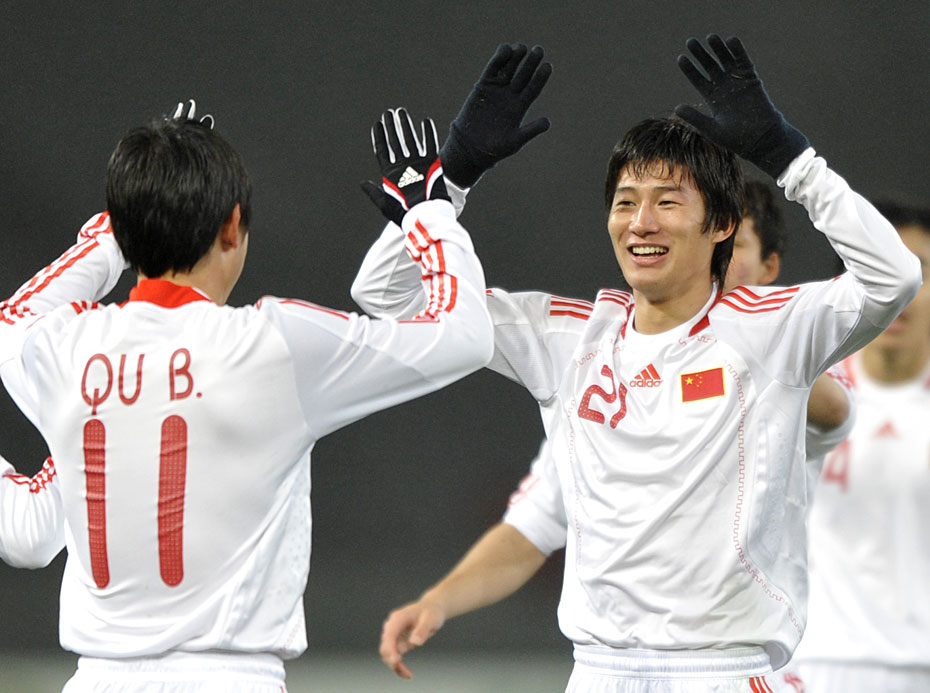 2月10日晚18:15,中國(guó)男足國(guó)家隊(duì)迎來(lái)了東亞四強(qiáng)賽第二場(chǎng)與韓國(guó)隊(duì)的比賽,憑借著于海、郜林和鄧卓翔的進(jìn)球,國(guó)足3:0完勝韓國(guó),讓“恐韓癥”成為歷史。圖片來(lái)源:中國(guó)新聞網(wǎng)