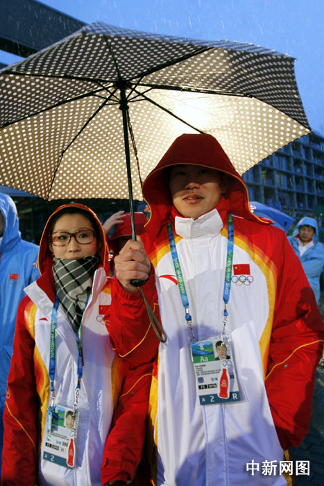 當(dāng)?shù)貢r間2月10日,中國代表團在溫哥華冬奧會奧運村舉行升旗儀式。升旗儀式結(jié)束后,中國代表團團長劉鵬帶領(lǐng)代表團成員展開橫幅高聲向全體國人送上新春祝福。中新社記者 盛佳鵬 攝