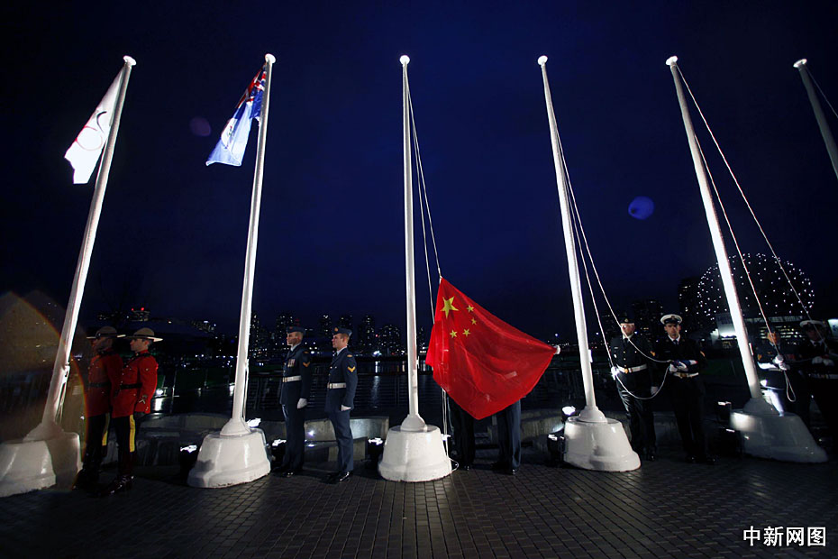 圖為中國國旗在溫哥華冬奧會奧運(yùn)村升起。