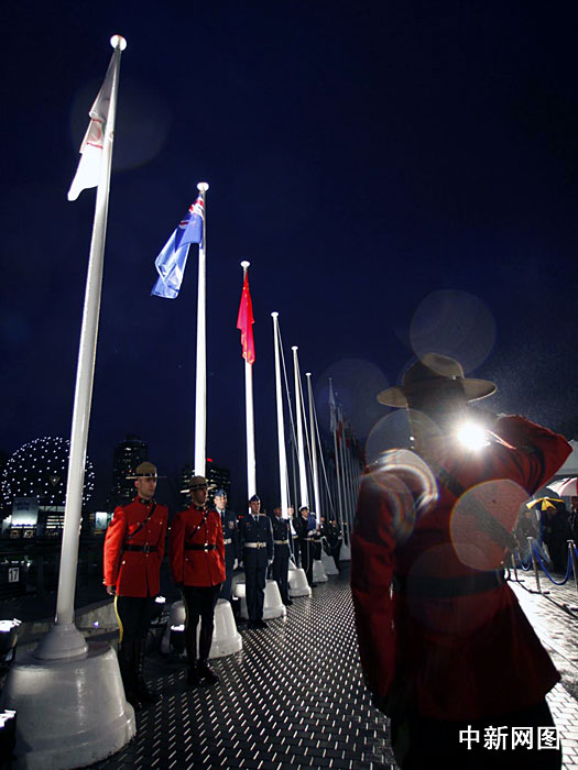 當?shù)貢r間2月10日,中國代表團在溫哥華冬奧會奧運村舉行升旗儀式。升旗儀式結(jié)束后,中國代表團團長劉鵬帶領(lǐng)代表團成員展開橫幅高聲向全體國人送上新春祝福。中新社記者 盛佳鵬 攝