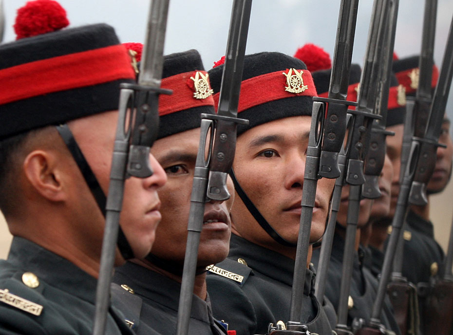 當(dāng)?shù)貢r(shí)間2月12日,尼泊爾士兵在首都加德滿都舉行了建軍節(jié)閱兵式。尼泊爾總統(tǒng)和總參謀長檢閱了受閱部隊(duì)。圖片來源:中國新聞網(wǎng)