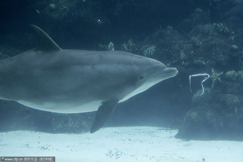 近日,美國奧蘭多海洋世界的一只寬吻海豚吹出“心形”氣泡,似乎要在情人節(jié)來臨前夕傳達(dá)濃濃愛意。圖片來源:CFP