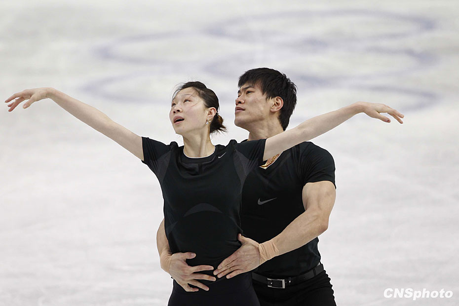 當(dāng)?shù)貢r間2月13日,中國花樣滑冰隊(duì)龐清/佟健、張丹/張昊在溫哥華太平洋體育館,利用最后的休息時間重復(fù)練習(xí)積極備戰(zhàn)即將到來的比賽。中新社記者 盛佳鵬 攝