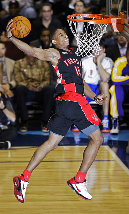 圖為多倫多猛龍隊的德羅贊進(jìn)行扣籃表演。