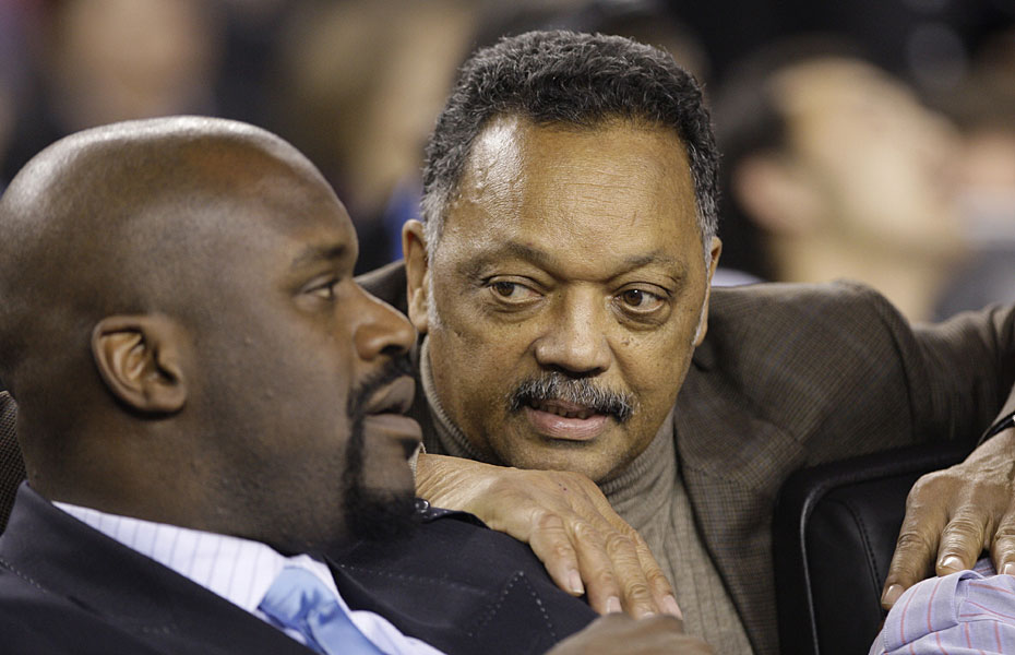 圖為大鯊魚奧尼爾(左)在全明星賽上充當(dāng)看客。
