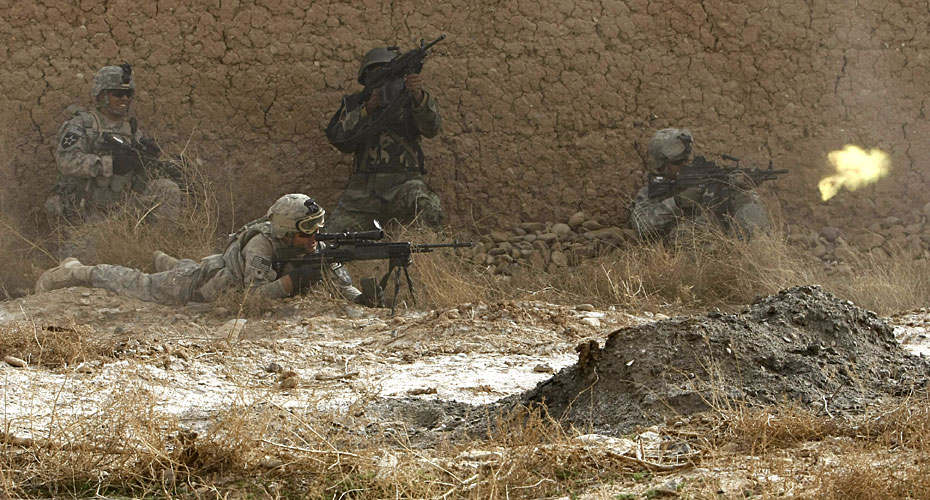 以美國為主的北約與阿富汗盟軍對阿南部城市馬爾賈的清剿活動14日進(jìn)入了第二天。隨著巷戰(zhàn)展開,交火愈加頻繁和激烈。圖片來源:中國新聞網(wǎng)