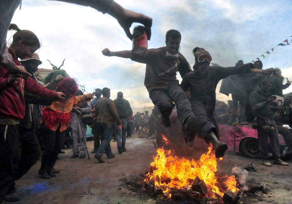 2月15日,希臘港口加拉西迪,狂歡者在街頭參加“面粉大戰(zhàn)”!懊娣鄞髴(zhàn)”是當(dāng)?shù)貞c?駳g季結(jié)束的一項(xiàng)傳統(tǒng)活動,隨后將是為期40天的齋戒月直至復(fù)活節(jié)。圖片來源:中國新聞網(wǎng)