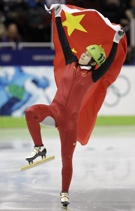 2010年溫哥華冬奧會(huì)短道速滑女子500米決賽北京時(shí)間2月18日上午11時(shí)許舉行,中國選手王濛獲得冠軍,為中國代表團(tuán)再添一枚金牌。圖片來源:中國新聞網(wǎng)