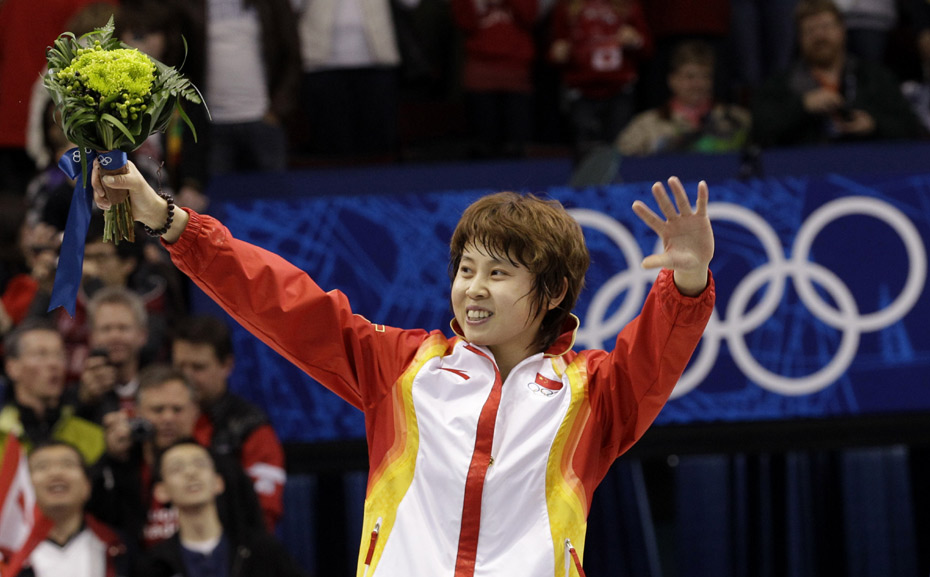 2010年溫哥華冬奧會(huì)短道速滑女子500米決賽北京時(shí)間2月18日上午11時(shí)許舉行,中國選手王濛獲得冠軍,為中國代表團(tuán)再添一枚金牌。圖片來源:中國新聞網(wǎng)