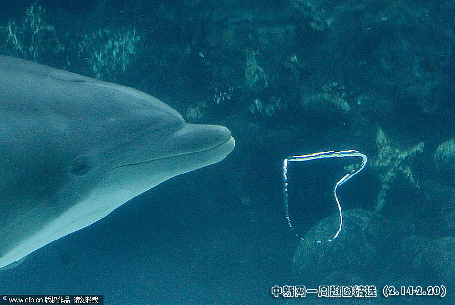 近日,美國(guó)奧蘭多海洋世界的一只寬吻海豚吹出“心形”氣泡,似乎要在情人節(jié)來(lái)臨前夕傳達(dá)濃濃愛意。圖片來(lái)源:CFP>>點(diǎn)擊觀看詳細(xì)內(nèi)容