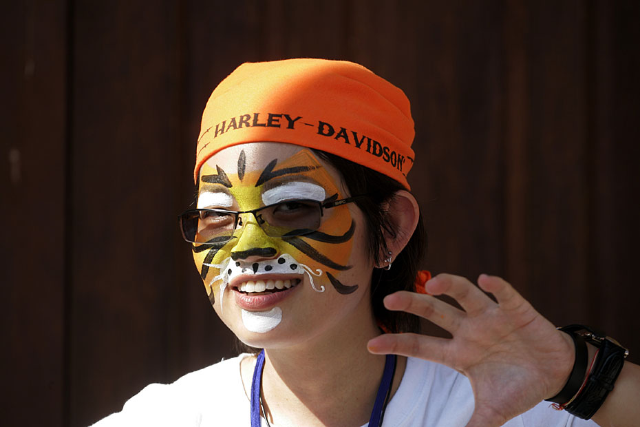 2月20日,馬來西亞民眾圍聚在首都吉隆坡附近的佛光山東禪寺,紛紛將自己繪成老虎的樣子,呼吁大家保護(hù)野生虎。圖片來源:中國新聞網(wǎng)