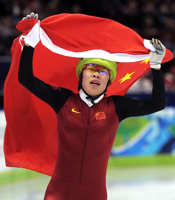 2月21日中午,剛剛結(jié)束的冬奧會(huì)短道速滑女子1500米決賽中,中國(guó)選手周洋力壓各路名將,以破奧運(yùn)會(huì)紀(jì)錄的2分16秒993的成績(jī)奪冠,為中國(guó)代表團(tuán)添得第三金。圖片來源:中國(guó)新聞網(wǎng)
