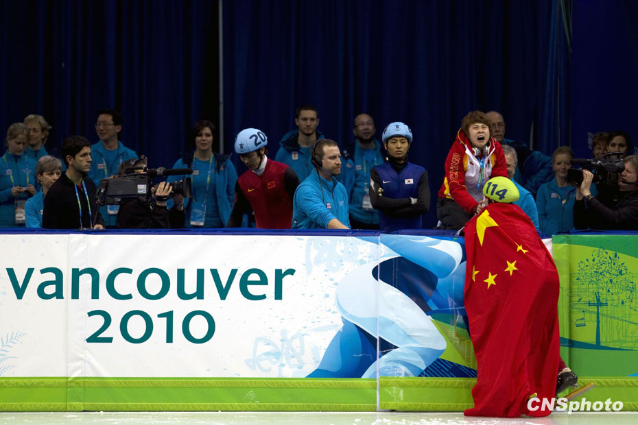 2月21日中午,剛剛結(jié)束的冬奧會(huì)短道速滑女子1500米決賽中,中國(guó)選手周洋力壓各路名將,以破奧運(yùn)會(huì)紀(jì)錄的2分16秒993的成績(jī)奪冠,為中國(guó)代表團(tuán)添得第三金。中新社發(fā) 盛佳鵬 攝