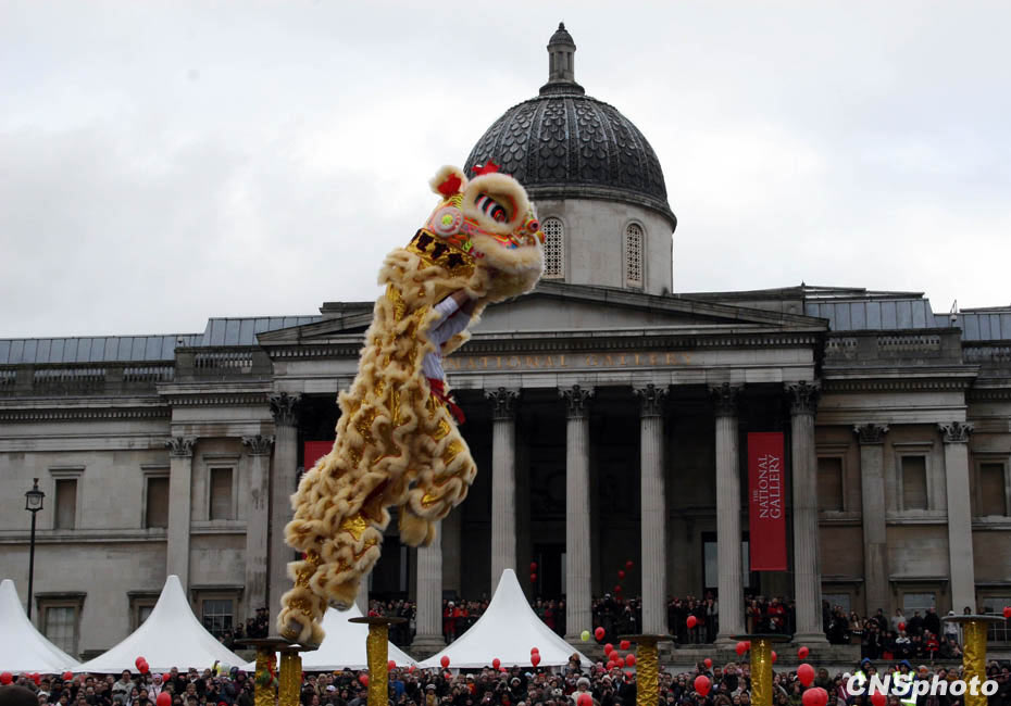 當地時間2月21日,亞洲之外最大規(guī)模的春節(jié)慶祝活動——倫敦春節(jié)慶典在倫敦特拉法加廣場、萊斯特廣場及倫敦華埠舉行,圖為當地僑社舞獅團表演的“梅花樁”,令現場數萬觀眾發(fā)出驚嘆。 中新社發(fā) 魏群 攝