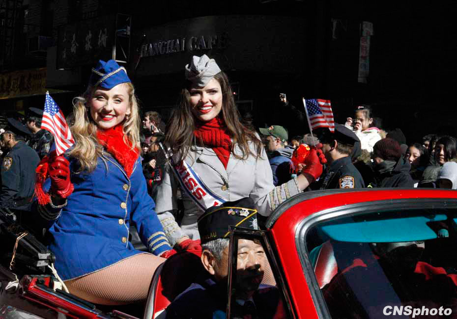 虎年紐約華埠慶祝農(nóng)歷新年“重頭戲”花車大游行21日登場,吸引超過10萬人圍觀共同狂歡,成為歷年來參加人數(shù)最多的一次花車游行。12輛盛裝花車以及數(shù)千人的表演團隊沿著華埠最熱鬧的數(shù)十條街道一邊行進一邊表演,滿天彩帶飄揚,場面熱鬧非常。圖為表演團隊在行進中。中新社發(fā) 魏晞 攝