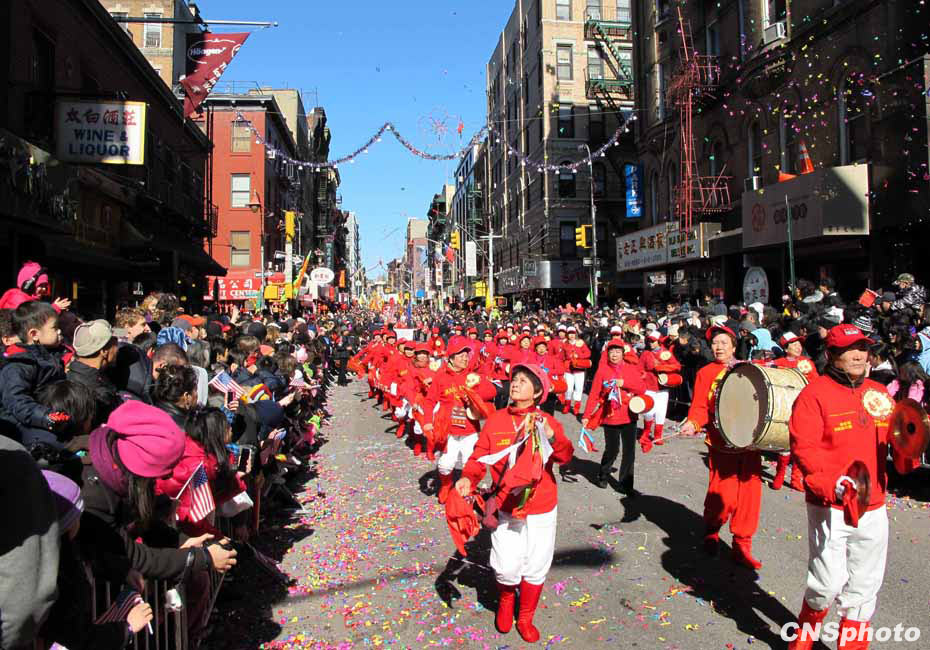 虎年紐約華埠慶祝農(nóng)歷新年“重頭戲”花車大游行21日登場,吸引超過10萬人圍觀共同狂歡,成為歷年來參加人數(shù)最多的一次花車游行。12輛盛裝花車以及數(shù)千人的表演團(tuán)隊沿著華埠最熱鬧的數(shù)十條街道一邊行進(jìn)一邊表演,滿天彩帶飄揚,場面熱鬧非常。中新社發(fā) 魏晞 攝
