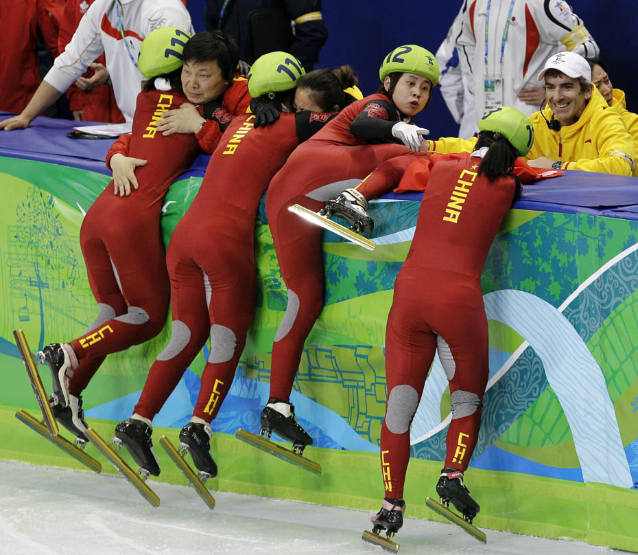 當(dāng)?shù)貢r間2月24日,溫哥華冬奧會女子短道速滑3000米接力A組決賽中,中國隊王濛、周洋、孫琳琳、張會四朵金花聯(lián)袂出擊,最終將金牌歸入中國隊囊中。這也是本屆冬奧會中國隊奪得的第四枚金牌。圖片來源:中國新聞網(wǎng)