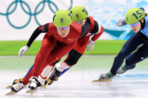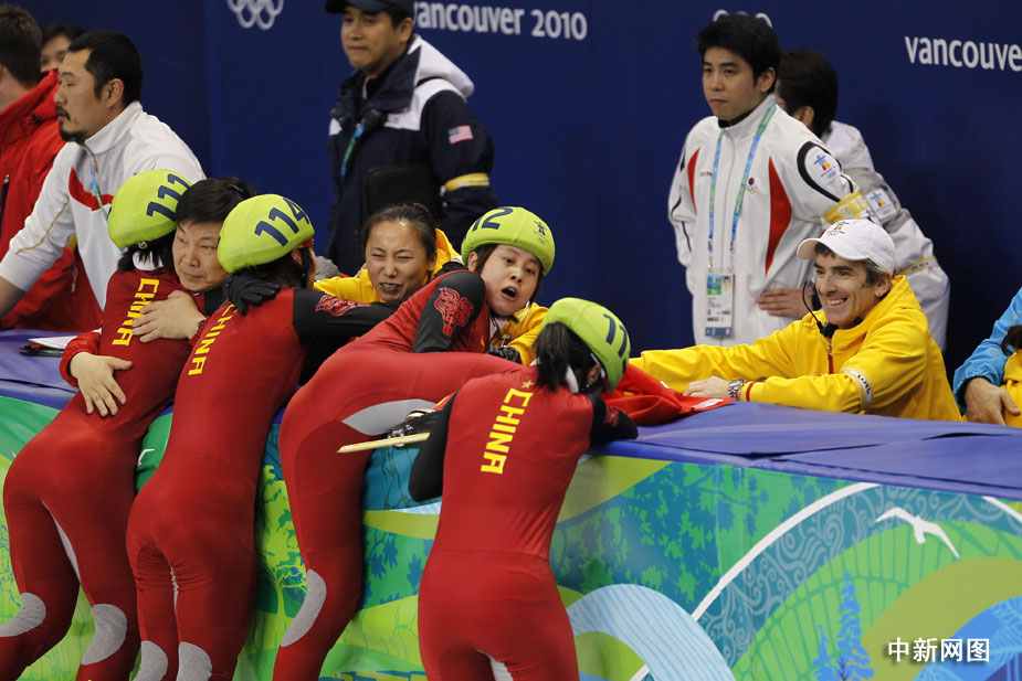 中國(guó)短道速滑隊(duì)25日在溫哥華冬奧會(huì)上奪得女子接力金牌,實(shí)現(xiàn)了歷史性突破。中新社記者盛佳鵬 攝