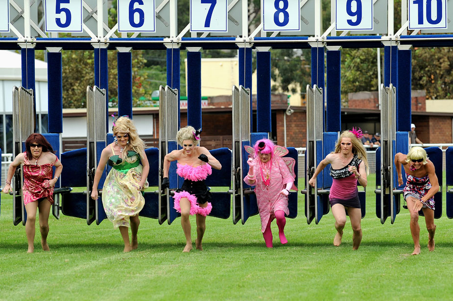 當(dāng)?shù)貢r(shí)間2月26日,澳大利亞悉尼,眾多同性戀們濃妝艷抹在皇家賽馬場(chǎng)舉行賽跑,迎接即將到來(lái)的悉尼同性戀大游行。
