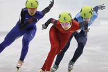 北京時間27日中午,中國選手王濛在2010年溫哥華冬奧會短道速滑女子1000米的決賽中摘得金牌,至此,中國短道速滑女隊包攬了本屆冬奧會女子全部四個項目的金牌創(chuàng)造了歷史。中新社發(fā) 盛佳鵬攝