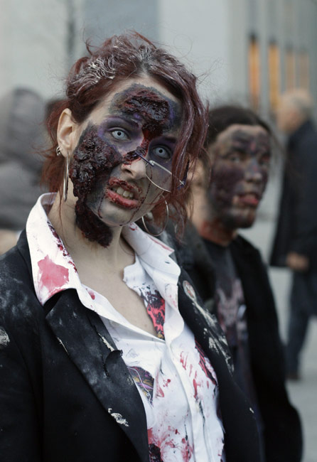 當(dāng)?shù)貢r(shí)間2月27日,在西班牙馬德里,眾多愛(ài)好者裝扮成“僵尸”的模樣,在街頭舉行巡游活動(dòng)。