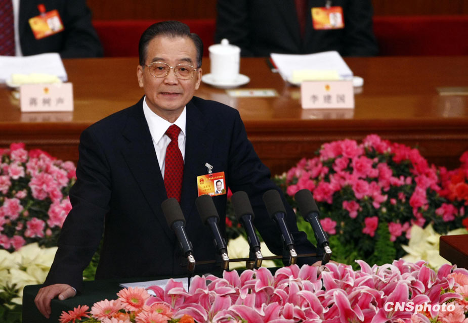 3月5日上午9時(shí),十一屆全國(guó)人大三次會(huì)議在北京隆重開(kāi)幕。國(guó)務(wù)院總理溫家寶作政府工作報(bào)告。圖片來(lái)源:中國(guó)新聞網(wǎng)