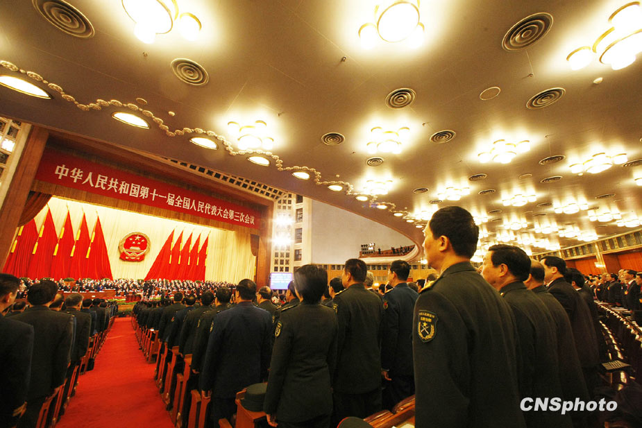 3月5日上午9時,十一屆全國人大三次會議在北京隆重開幕。國務院總理溫家寶作政府工作報告。圖片來源:中國新聞網(wǎng)