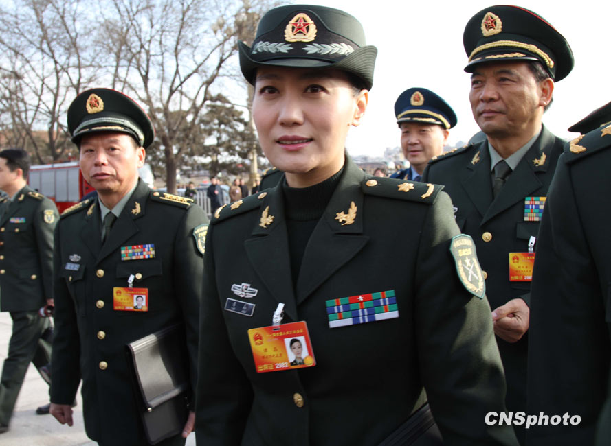 3月5日上午9時,十一屆全國人大三次會議在北京隆重開幕。國務(wù)院總理溫家寶作政府工作報(bào)告。圖為來自解放軍代表團(tuán)的青年歌唱家譚晶步入會場。中新社發(fā) 韓蘇原 攝