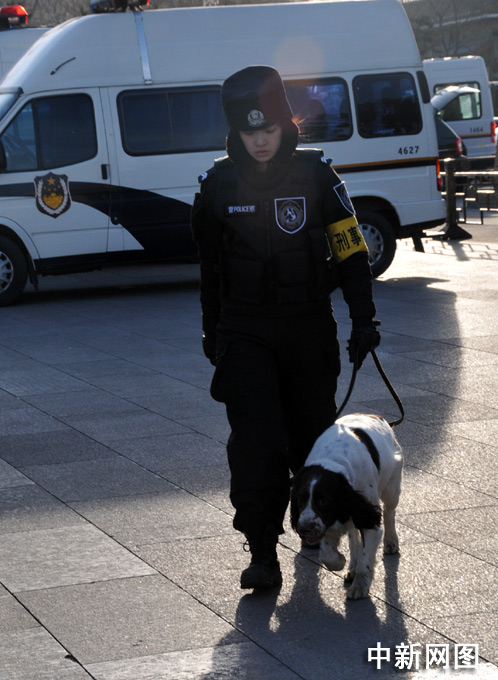 3月5日上午9時,十一屆全國人大三次會議在北京隆重開幕。國務院總理溫家寶作政府工作報告。圖為圖為人民大會堂外的安檢處。中新網記者 吳歆 攝