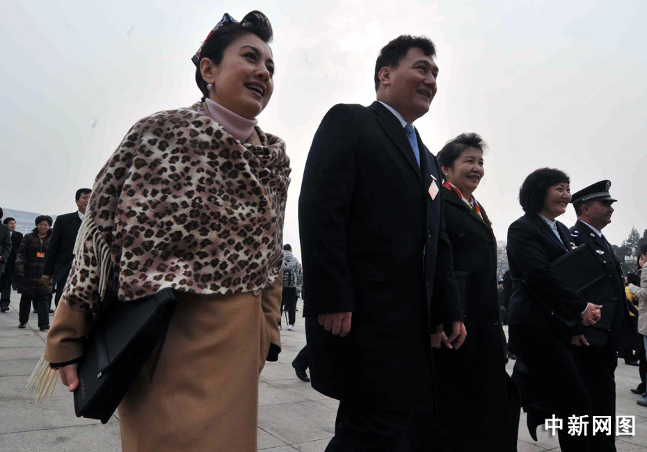 十一屆全國人大三次會議3月5日在北京開幕,各民族人大女代表的服飾靚麗多彩,在天安門廣場前大展英姿。 中新社記者 賈國榮 攝