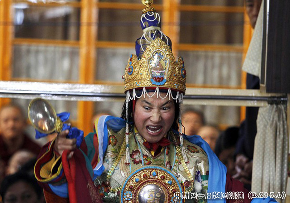 3月2日,在印度達(dá)蘭薩拉,西藏神使慈仁敬安正在進(jìn)行降神儀式。圖片來(lái)源:中國(guó)新聞網(wǎng)>>點(diǎn)擊觀看詳細(xì)內(nèi)容