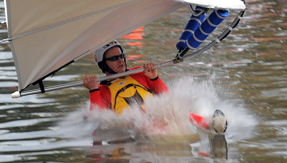 當(dāng)?shù)貢r間3月7日,澳大利亞墨爾本舉行一年一度的“鳥人”大賽上,參賽者帶著自己的無動力“翅膀”飛身躍向水面。圖片來源:中國新聞網(wǎng)