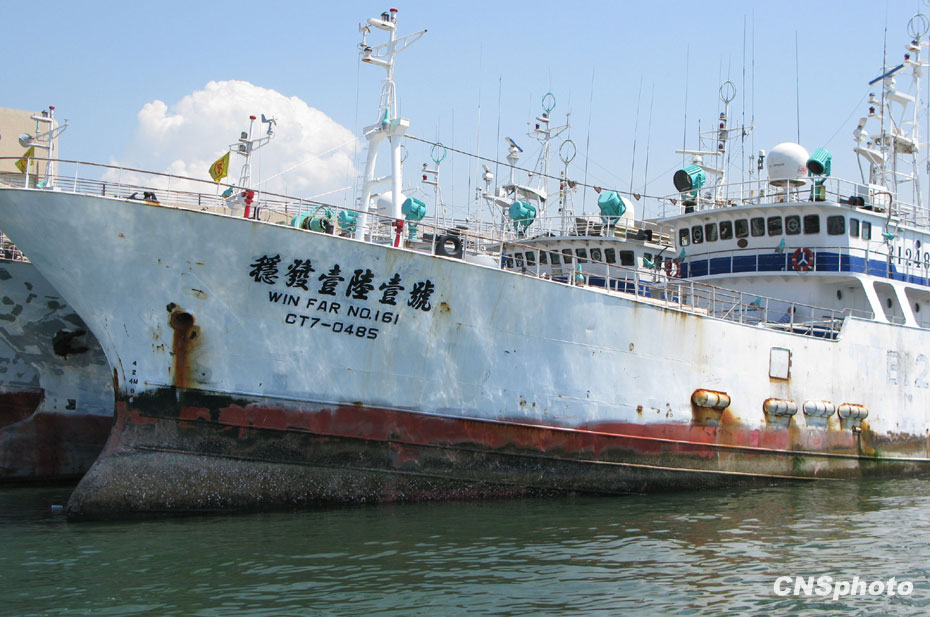 圖為“穩(wěn)發(fā)161號”現(xiàn)停靠高雄前鎮(zhèn)漁市場碼頭。中新社發(fā) 耿軍 攝