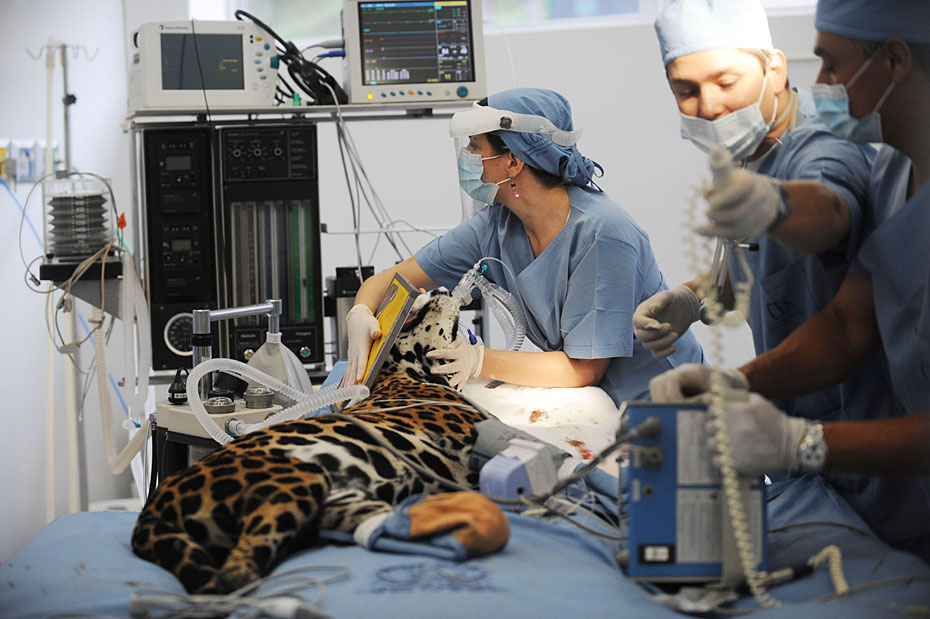 3月13日,在哥倫比亞麥德林附近的一個(gè)獸醫(yī)診所,一只雌性美洲虎在接受牙齒手術(shù)。圖片來(lái)源:中國(guó)新聞網(wǎng)