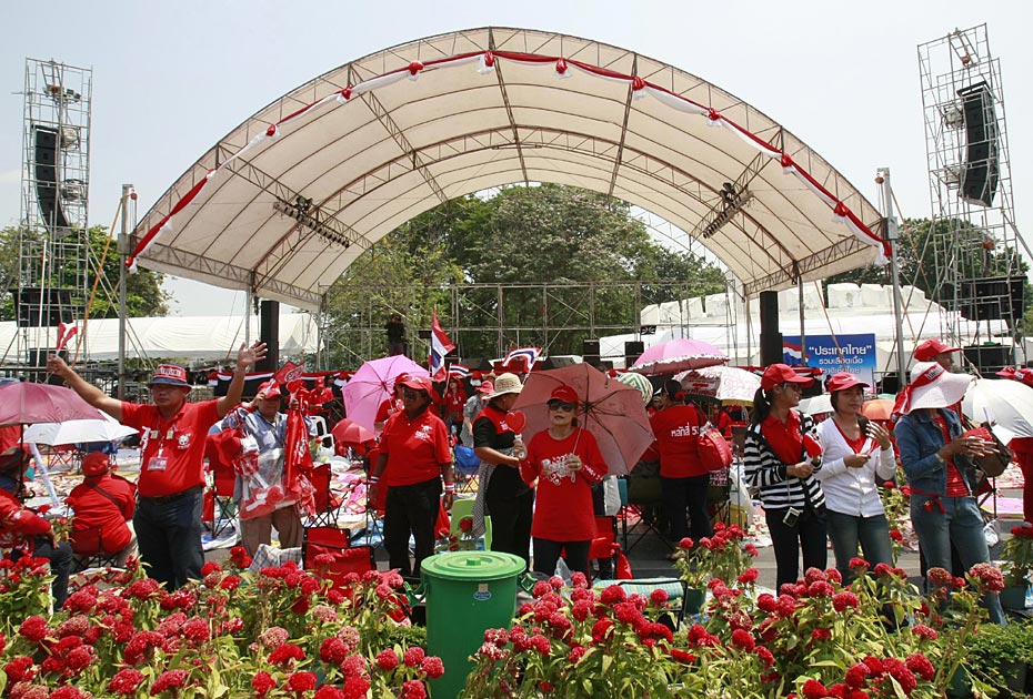 3月13日起,泰國(guó)“紅衫軍”陸續(xù)從泰國(guó)北部、東北部等外府進(jìn)入曼谷市,在集會(huì)主會(huì)場(chǎng)搭設(shè)演講舞臺(tái)和帳篷,拉開(kāi)大規(guī)模示威序幕。圖片來(lái)源:中國(guó)新聞網(wǎng)