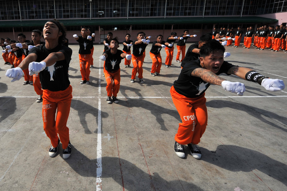 近日,在菲律賓超過1500名囚犯在監(jiān)獄中集體學習已故歌壇巨星杰克遜的舞蹈,以此來激起他們生活的斗志。圖片來源:中國新聞網(wǎng)