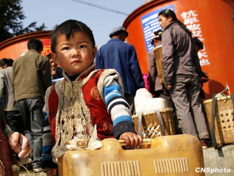中國西南地區(qū)抗旱形勢十分嚴(yán)峻,云南、貴州、廣西、重慶、四川五省(區(qū)、市)局部出現(xiàn)嚴(yán)重干旱。截至3月16日,有2000多萬人因旱飲水困難。圖片來源:中國新聞網(wǎng)