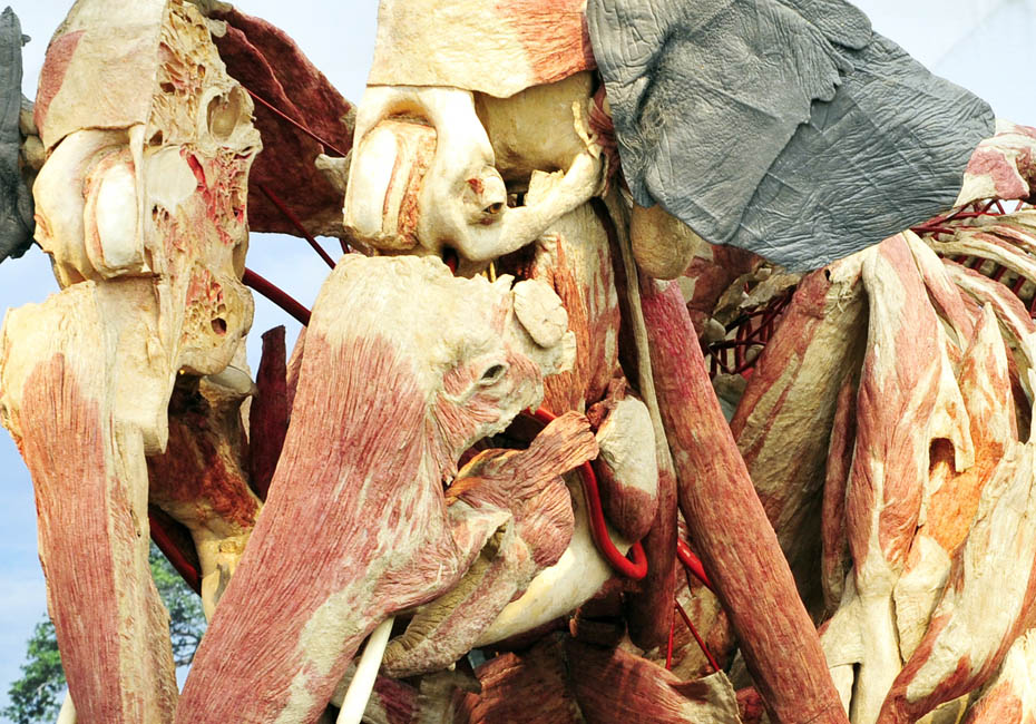德國(guó)著名解剖學(xué)家鞏特爾·馮·哈根斯博士被稱為“死亡先生”,目前展出的是有史以來(lái)的最大的動(dòng)物尸體。體型巨大的“桑芭”尸體高3.5米,重3.2噸。據(jù)悉“桑芭”將于2010年4月歸還諾因基興動(dòng)物園。圖片來(lái)源:中國(guó)新聞網(wǎng)