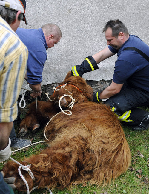 3月18日,德國(guó)一頭蘇格蘭高地牛來(lái)到一居民院內(nèi)懶洋洋的曬太陽(yáng),最后經(jīng)過(guò)獸醫(yī)的麻醉和消防員協(xié)力才將這頭蠻力十足的家伙“制服”。圖片來(lái)源:中國(guó)新聞網(wǎng)