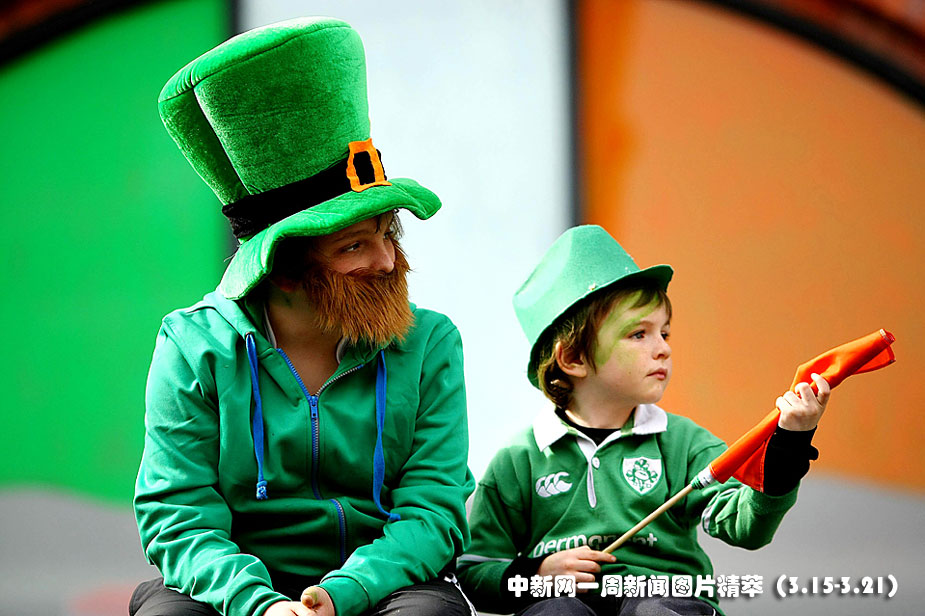 17日(周三),在都柏林,孩子們觀看圣帕特里克節(jié)大游行。愛爾蘭全國將有數(shù)十萬人通過180多個活動來慶祝這一節(jié)日。