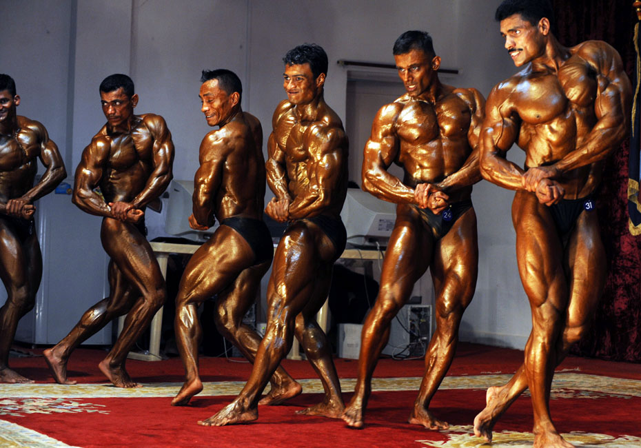 3月24日,印度舉辦第37屆健美錦標賽,來自陸軍、空軍和海軍的防務(wù)人員在健美比賽上大秀肌肉展現(xiàn)男性魅力。圖片來源:中國新聞網(wǎng)