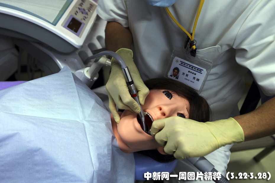 3月23日(周二),東京昭和大學(xué)一名牙醫(yī)正在一個(gè)名為花子的機(jī)器人身上演示治療操作。這個(gè)機(jī)器人是該校自主開發(fā)的,她的嘴會流血,也會分泌唾液。