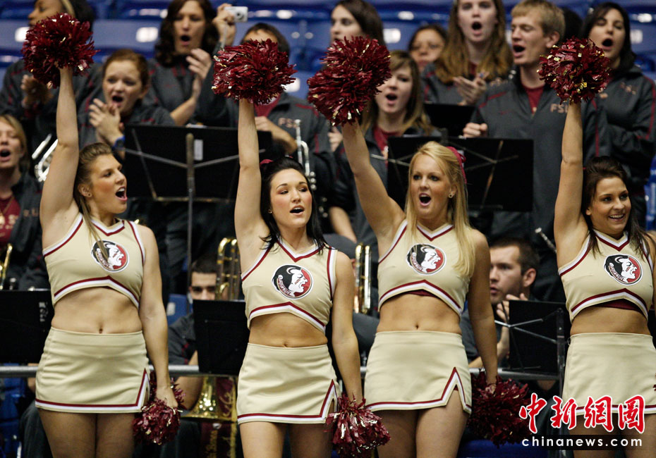 啦啦隊的歷史可追溯到原始部落時期,戰(zhàn)士們狩獵凱旋歸來時,人們給予歡呼及鼓勵的動作。最初的拉拉隊要追溯到19世紀80年代的美國大學(xué)校園,當時的形式是在大學(xué)里的橄欖球賽上,一位領(lǐng)隊站在一大群人前面領(lǐng)導(dǎo)他們?yōu)樽约旱那蜿爡群爸。圖片來源:中國新聞網(wǎng)