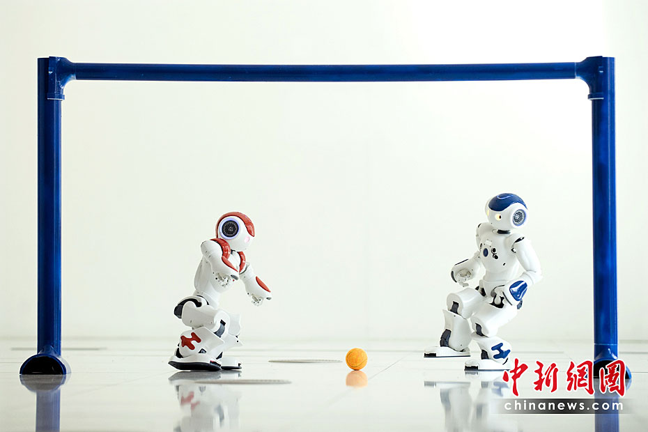 機器人足球隊在英國愛丁堡國際科學節(jié)亮相,它們由愛丁堡大學研制而成。機器人足球隊員內置處理器可以感受周圍的環(huán)境和其他機器人的反應。圖片來源:中國新聞網