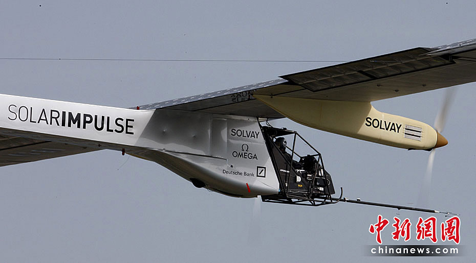 當?shù)貢r間4月7日上午,全球首架依靠太陽能驅動的飛機進行首次試飛,預計此種新型飛機將在2011年實現(xiàn)環(huán)球航行。圖片來源:中國新聞網(wǎng)
